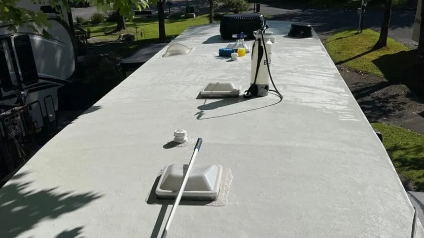 Safe exterior cleaning for RVs, removing road grime, mold, and buildup without damaging paint or finishes.